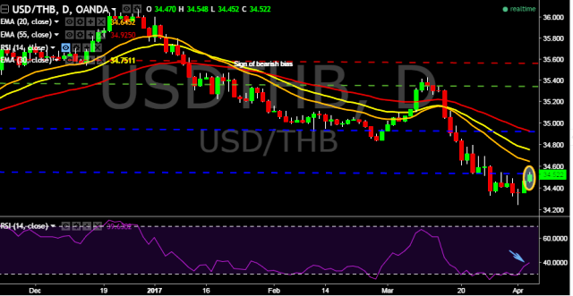 We prefer to take long position in USD/THB around 34.50, stop loss at 34.35 and target of 34.61/34.72.