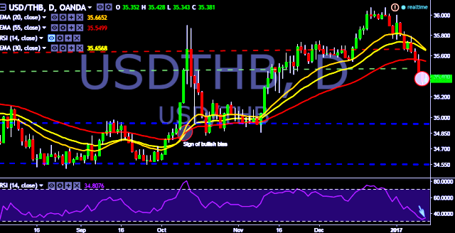 We prefer to take long position in USD/THB only above 35.44, stop loss at 35.30 and target of 35.61/35.74.
