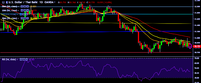 We prefer to take short position on USD/THB only below 30.70, stop loss at 30.90 and target of 30.42.