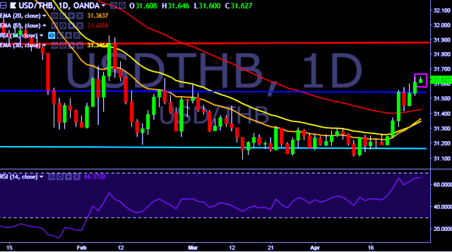 We prefer to take long position in USD/THB around 31.58, stop loss at 31.50 and target of 31.75/31.92.