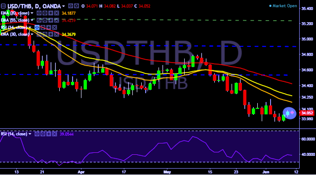 We prefer to take long position in USD/THB only below 33.95, stop loss at 34.23 and target of 33.58/33.01.