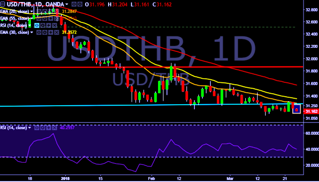 We prefer to take short position in USD/THB around 31.18, stop loss at 31.30 and target of 31.08/31.01.