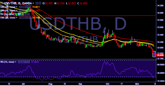 We prefer to take short position in USD/THB around 32.90, stop loss at 33.03 and target of 32.77/32.52.