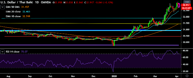 We prefer to go short on USD/THB around 32.90, stop loss at 33.10 and target of 32.72/32.56.