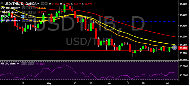 We prefer to take long position in USD/THB only above 34.05, stop loss 33.90 and target of 34.27.