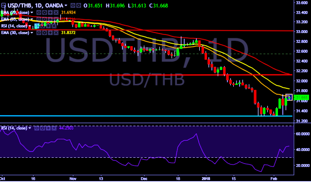We prefer to take long position in USD/THB only above 31.72, stop loss at 31.50 and target of 32.00.