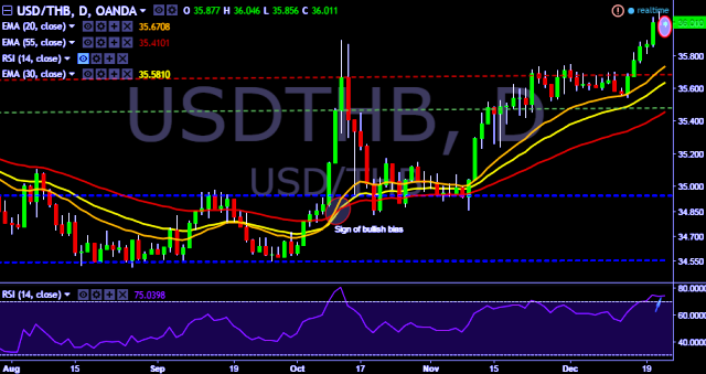 We prefer to take long position in USD/THB around 36.00, stop loss at 35.96 and target of 36.08/36.25/36.39.