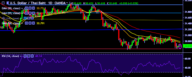 - USD/THB is currently trading around 30.64 marks.