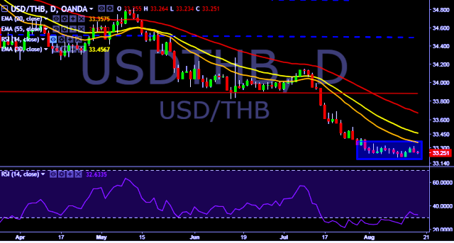 We prefer to take long position in USD/THB only above 33.32, stop loss at 33.20 and target of 33.52.