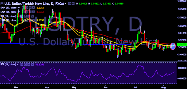 We prefer to take long position in USD/TRY only above 3.5497, stop loss at 3.5252, and target of 3.5735.