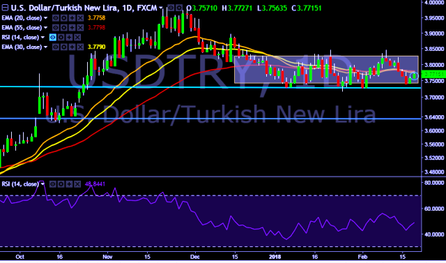 We prefer to go long on USD/TRY around 3.7650, stop loss at 3.7400 and target of 3.8183.