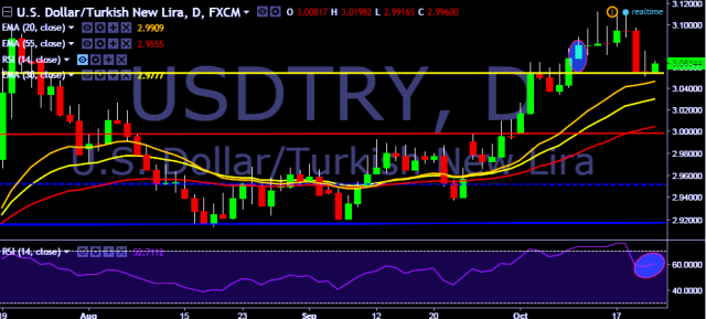 We prefer to go short on USD/TRY only below 3.0593, stop loss at 3.0755 and target of 3.0343.