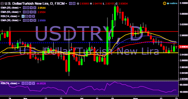 We prefer to take long position in USD/TRY only above 2.9411, stop loss 2.9210 and target 2.9700.