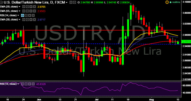 We prefer to take long position in USD/TRY only above 2.9550, stop loss 2.9442 and target 2.9699/2.9749/2.9977.