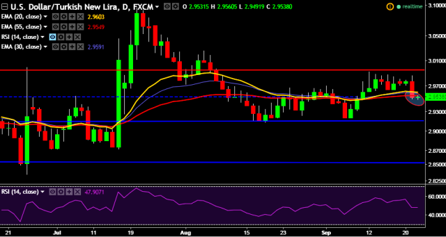 We prefer to go short on USD/TRY only below 2.9491, stop loss at 2.9647 and target of 2.9207.