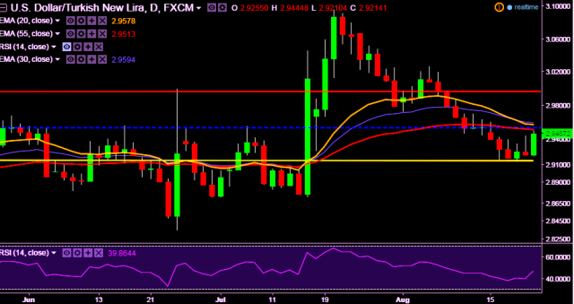 - USD/TRY is currently trading at 2.9465 levels.