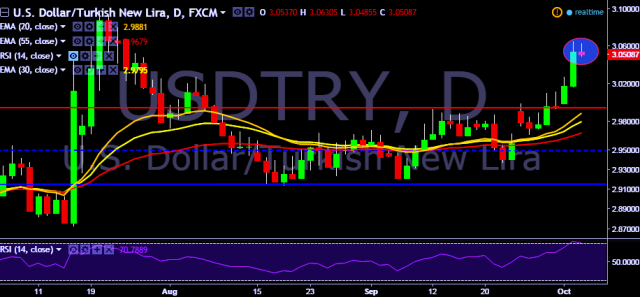 We prefer to go short on USD/TRY around 3.0550, stop loss at 3.0653 and target of 3.0146.