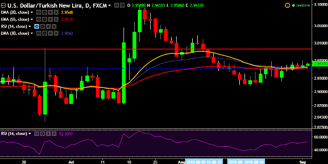 We prefer to take long position in USD/TRY around 2.9610, stop loss 2.9481 and target 2.9977.