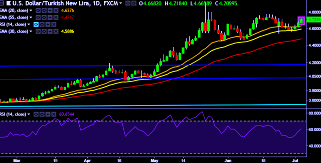 We prefer to take long position on USD/TRY around 4.7180, stop loss at 4.6658 and target of 4.7751.