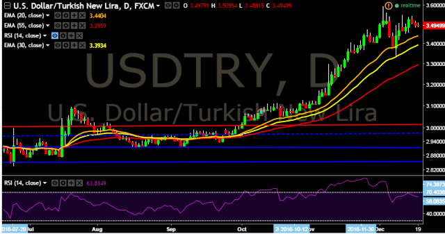 We prefer to go long on USD/TRY only above 3.4979, stop loss at 3.4854 and target of 3.3684.