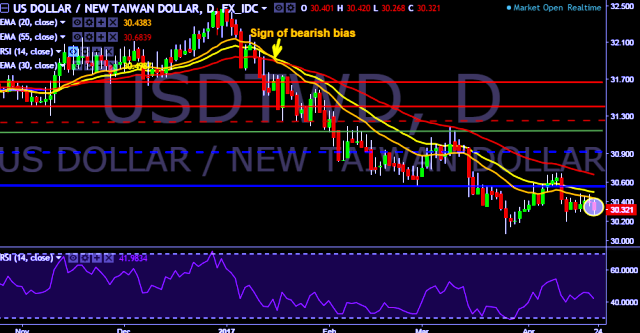 We prefer to take short position in USD/TWD around 30.35, stop loss at 30.47 and target of 30.20/30.06.