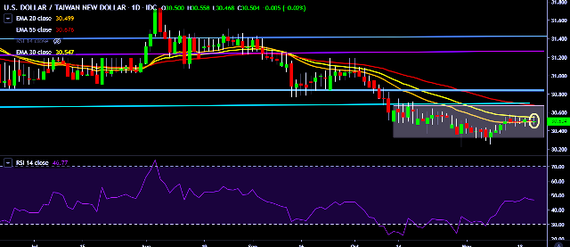 We prefer to take long position on USD/TWD only above 30.58, stop loss at 30.40 and target of 30.87/31.02.