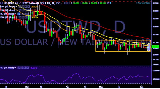 - USD/TWD is currently trading around 30.10 marks.