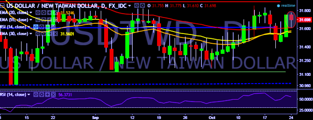 We prefer to go short on USD/TWD around 31.70, stop loss 31.83 and target of 31.50/31.26.