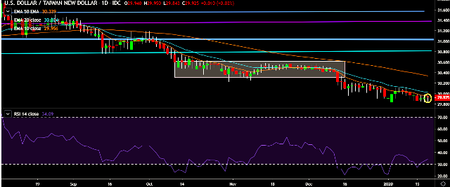We prefer to take short position on USD/TWD only below 29.80, stop loss at 30.02 and target of 29.70/29.46.