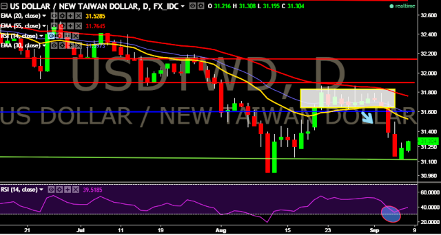 We prefer to go short on USD/TWD around 31.38 with stop loss at 31.70 and target of 31.09/30.85/30.39.