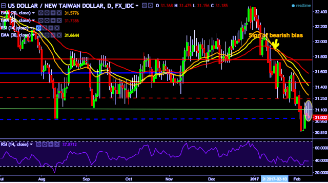 We prefer to take short position in USD/TWD around 31.00, stop loss 31.19 and target of 30.82/30.77.