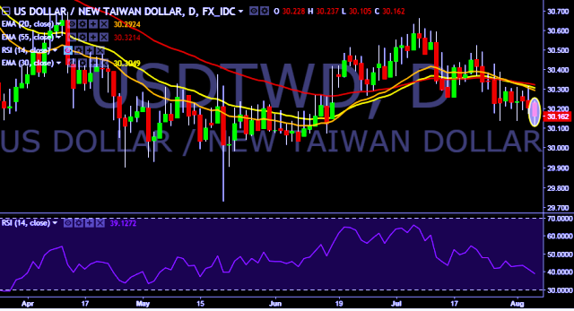 We prefer to take short position in USD/TWD around 30.18 mark, stop loss at 30.40 and target of 30.01/29.84.