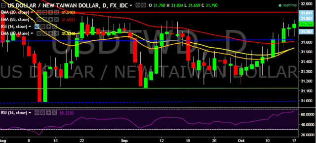 We prefer to go long on USD/TWD only above 31.83, stop loss 31.45 and target of 31.98/32.25.