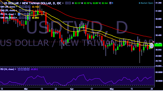 We prefer to take long position in USD/TWD only above 30.20, stop loss at 30.00 and target of 30.38/30.48.
