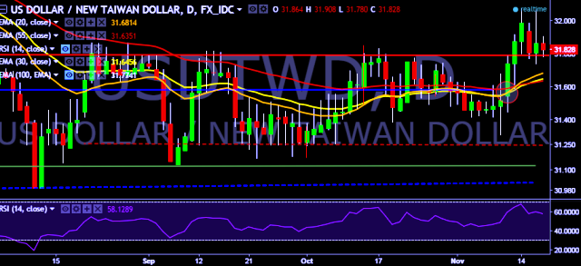 We prefer to go long on USD/TWD only above 31.86, stop loss 31.50 and target of 32.08/32.18/32.43.
