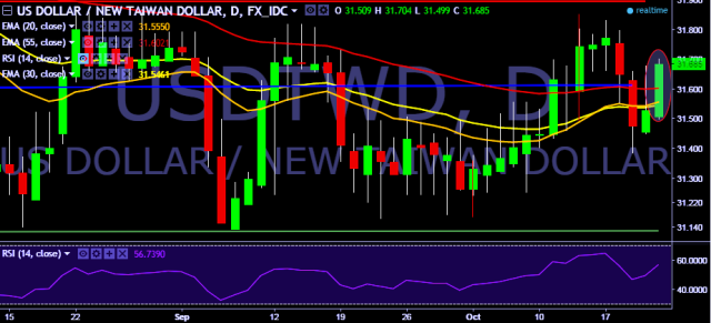 We prefer to go long on USD/TWD around 31.55, stop loss 31.45 and target of 31.84/31.98.