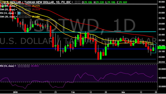 We prefer to take short position in USD/TWD around 29.20, stop loss 29.32 and target of 29.02/28.89.
