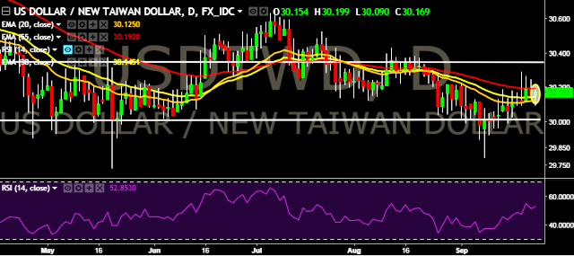 We prefer to take long position in USD/TWD around 30.10, stop loss at 30.03 and target of 30.30/30.50 mark.