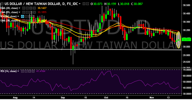 We prefer to take short position on USD/TWD only below 30.01, stop loss at 30.22 and target of 29.79/29.61 mark.
