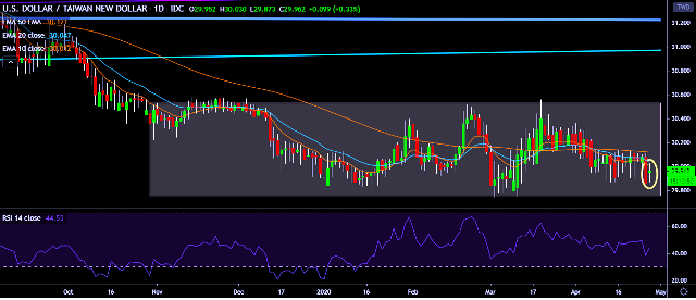 - USD/TWD is currently trading around 29.99 marks.