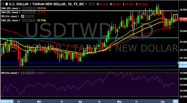 - USD/TWD is currently trading around 29.82 marks.