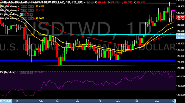 We prefer to take long position on USD/TWD only above 29.82, stop loss 29.62 and target of 30.02/30.22.