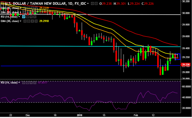 We prefer to take short position in USD/TWD only below 29.20, stop loss at 29.30 and target of 29.02.