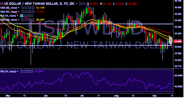 We prefer to take short position in USD/TWD around 30.10 mark, stop loss at 30.22 and target of 29.90/29.72.