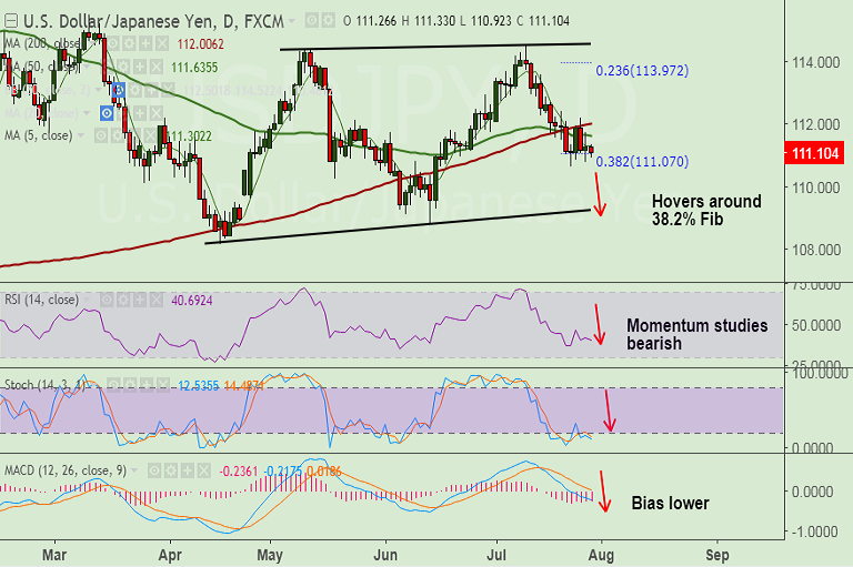 FxWirePro:USD/JPY neutral in the near-term, scope for downward resumption