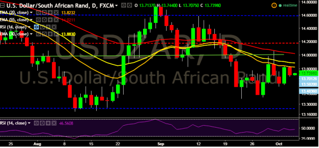 We prefer to go short on USD/ZAR only below 13.69, stop loss at 13.98 and target of 13.57/13.37/13.19.