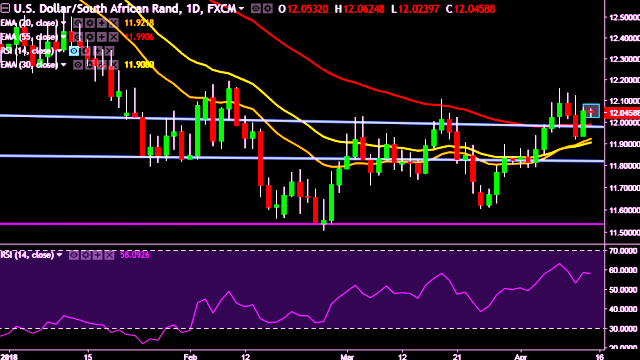 We prefer to take short position on USD/ZAR only below 12.02, stop loss at 12.08 and target of 11.92/11.62.