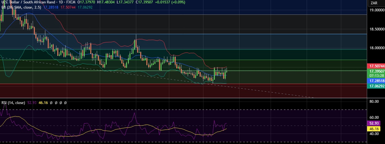 • Strong support is seen at 17.279(SMA 20) and break below could take the pair towards 17.069(23.6%fib).