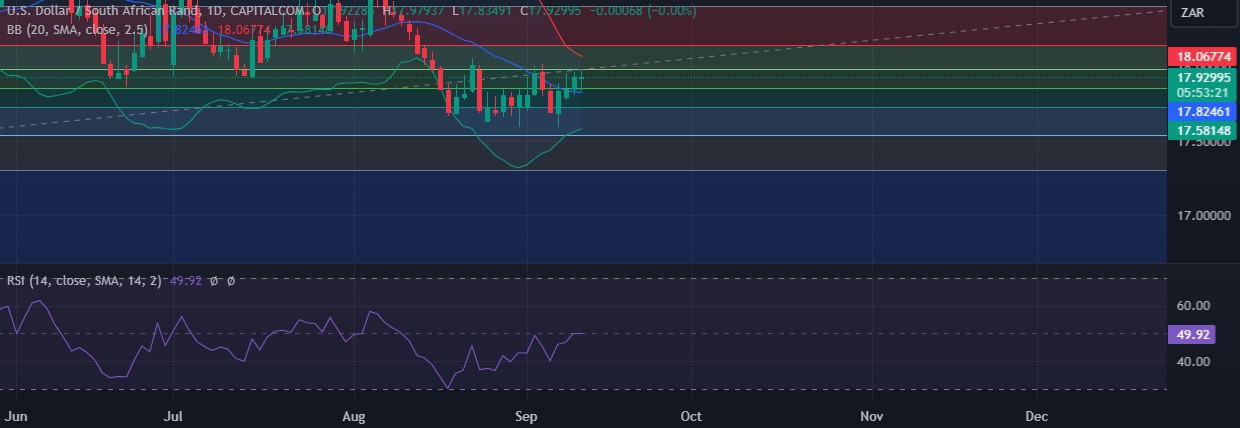 • Strong support is seen at 17.884 (50%fib) and break below could take the pair towards 17.778 (61.8%fib).