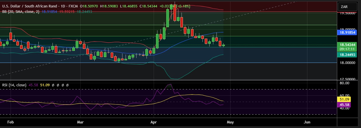 • Strong support is seen at 18. 453 (61.8%fib) and break below could take the pair towards 18.253 (Lower BB)
